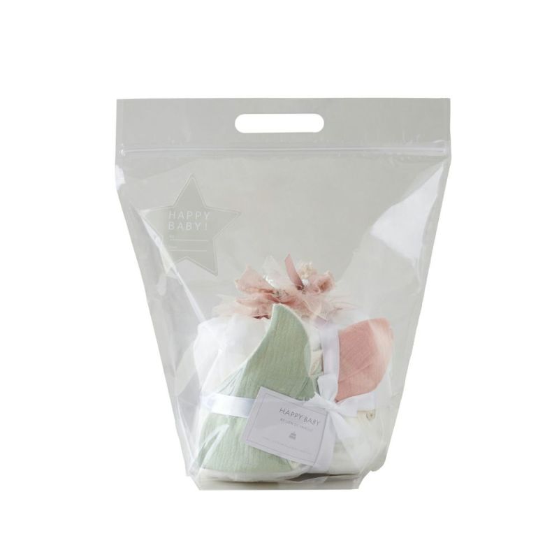 お名前が書ける星のステッカーを貼った、取っ手付きの袋でお届けします。