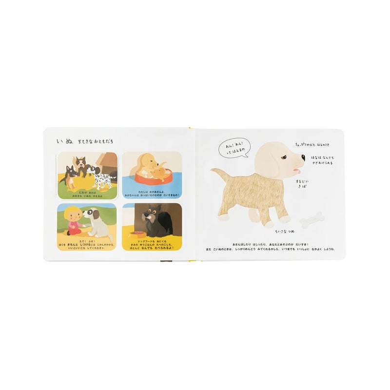 人間と暮らすかわいいどうぶつたちを、さわって学べるしかけ絵本。