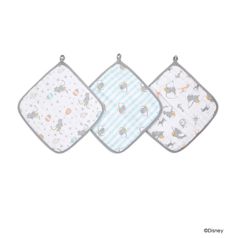NY発、モスリンコットン製のおくるみブランド aden+anais essentials(エイデンアンドアネイ エッセンシャルズ)【日本正規品】モスリンコットン ウォッシュクロス 3枚セット ディズニー ダンボ washcloths -dumbo- 3pk