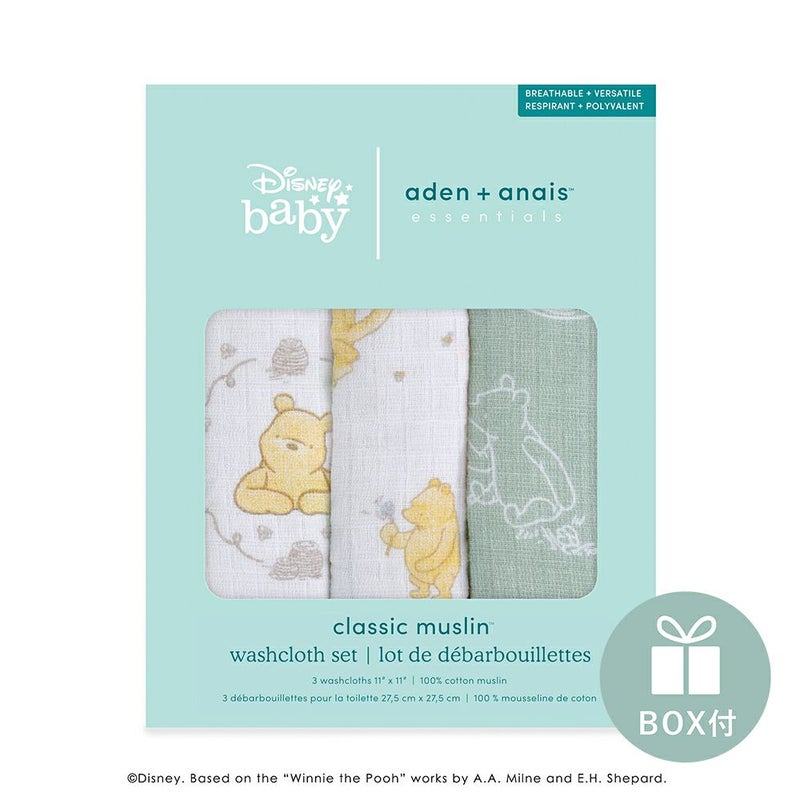 NY発、モスリンコットン製のおくるみブランド aden+anais essentials(エイデンアンドアネイ エッセンシャルズ)【日本正規品】モスリンコットン ウォッシュクロス 3枚セット ディズニー ウィニーアンドフレンズ washcloths -winnie+friends- 3pk