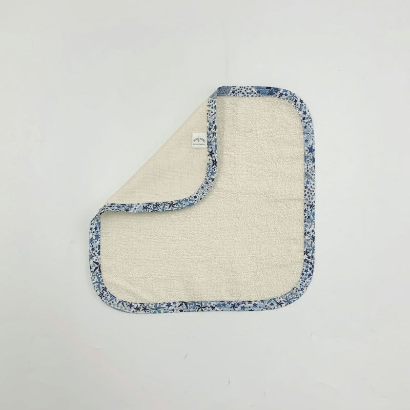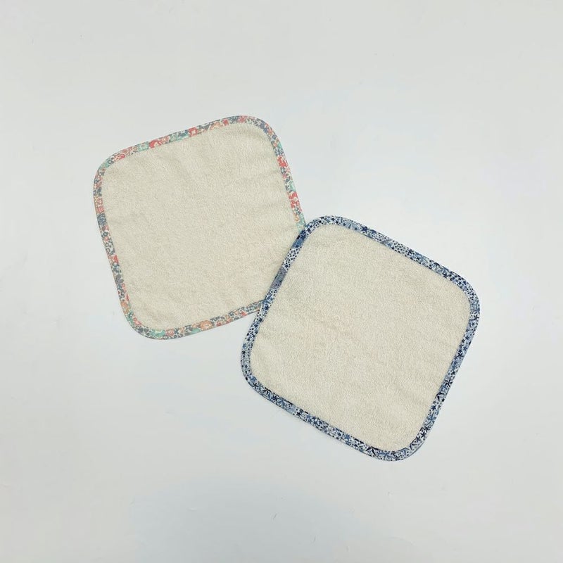 オーガニックコットンパイルをリバティプリント生地で縁どりました!