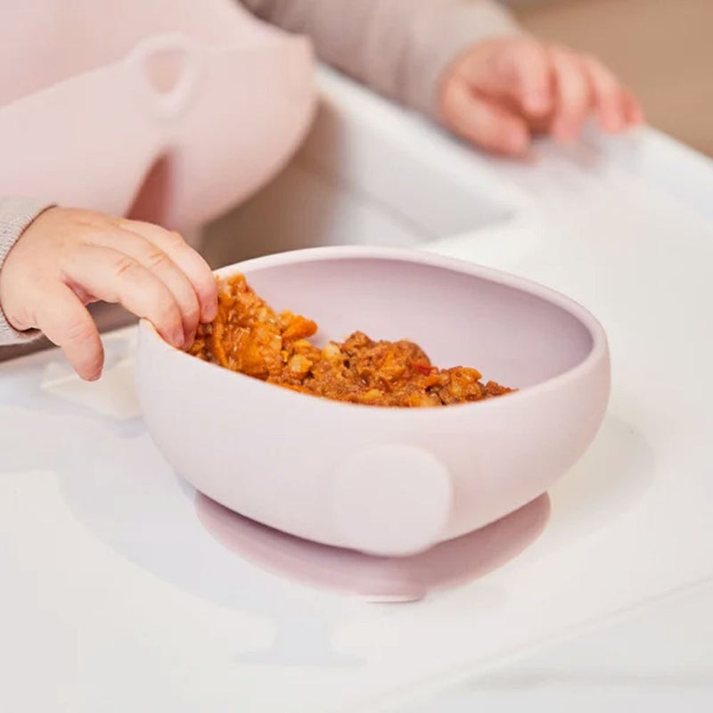 パパやママがサポートしながら食べさせてあげる離乳食初期から、お子様が自立した食事に移行していく後期までを考えてデザインされた蓋と取っ手の付いたボウル。