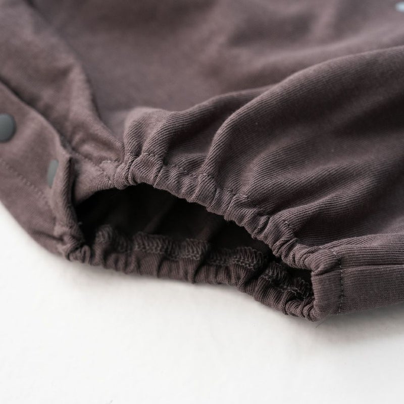 ゆったりとしたドルマンシルエットが可愛いブルマタイプの長袖ロンパース。