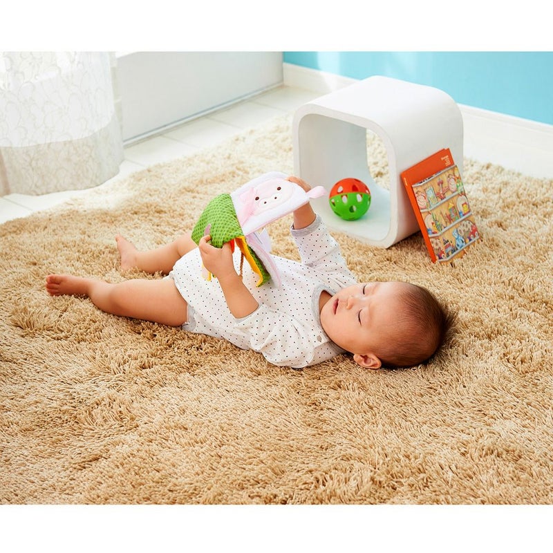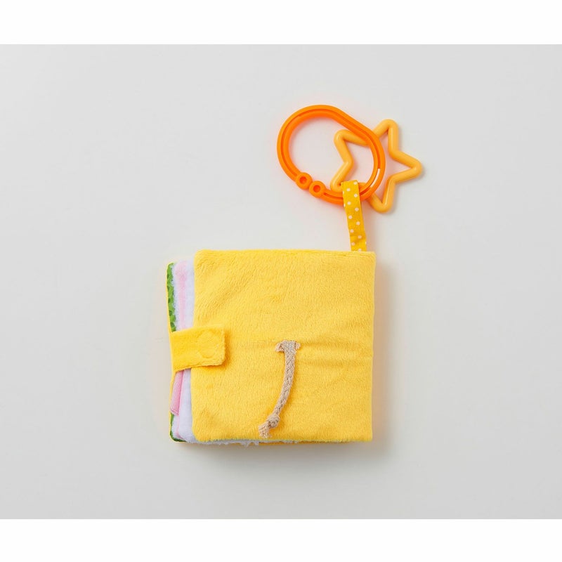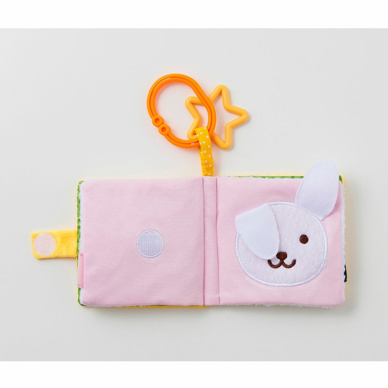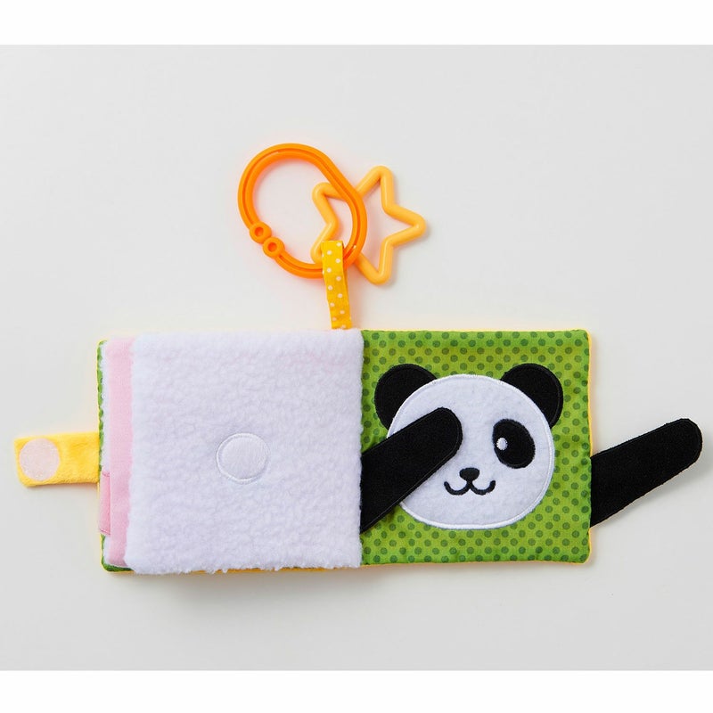 これは何の動物かな?めくって楽しい布絵本です。しっぽの形だけで動物を当てっこすることもでき、何度遊 んでも飽きることがありません。動物はライオン、ブタ、うさぎ、パンダの4種類。ベビーカーやバギーにもつ けられるので、外出時にも遊べます。