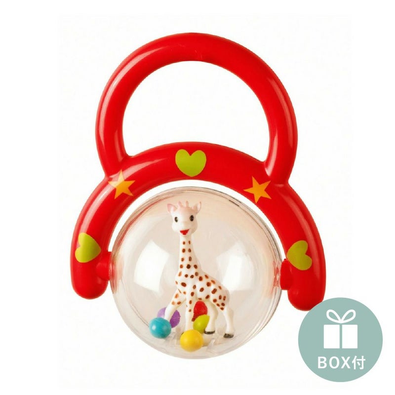 世界中で長く愛され続ける「きりんのソフィー」のラトル(ガラガラ)です。透明なボールの中には、ミニサイズのきりんのソフィー。ラトルを振ると、その周りを小さなボールが回ってカラカラと心地よい音が鳴ります。カラフルな色と動きが視覚を刺激し、優しい音が聴覚を刺激。楽しく赤ちゃんの成長を促してくれる、かわいいファーストトイです。