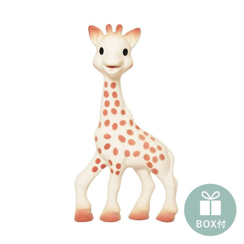 ソフィーの素材は水に強く手触りと香りがよいことで知られる、マレーシア産の天然ゴム。何でも口に入れてしまう赤ちゃんのことを考え、食用の塗料を使い丁寧に手作業で色付けされています。一つひとつ微妙に表情が違っているのもまた、ソフィーの魅力。自分だけのソフィーのようでうれしくなります。専用ボックス入りで、大切な方への出産祝いやプレゼントにもぴったりです。