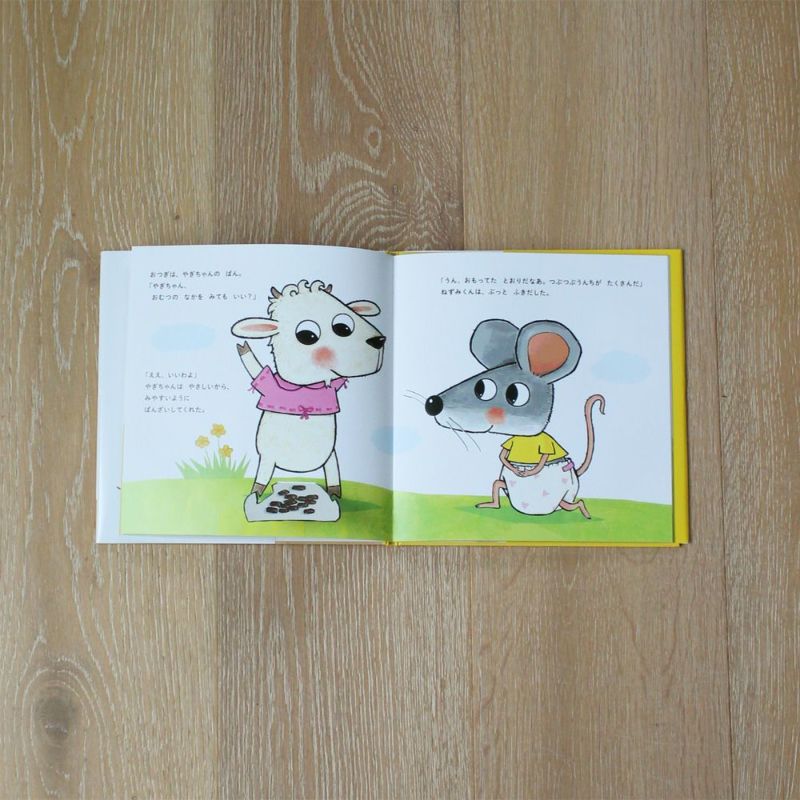 知りたがりやのネズミくんが、みんなのおむつの中がどうなっているのかのぞいていく絵本です。