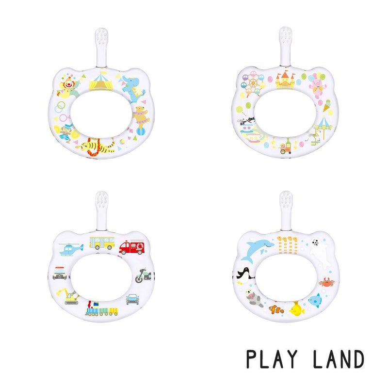 水族館や遊園地など子供が大好きな場所がモチーフの、見るだけでワクワクするカラフルで楽しい柄です。透明な持ち手を裏返して、裏からも絵柄を楽しめます。ハミガキの時間がより楽しく、大好きな時間になりますように。