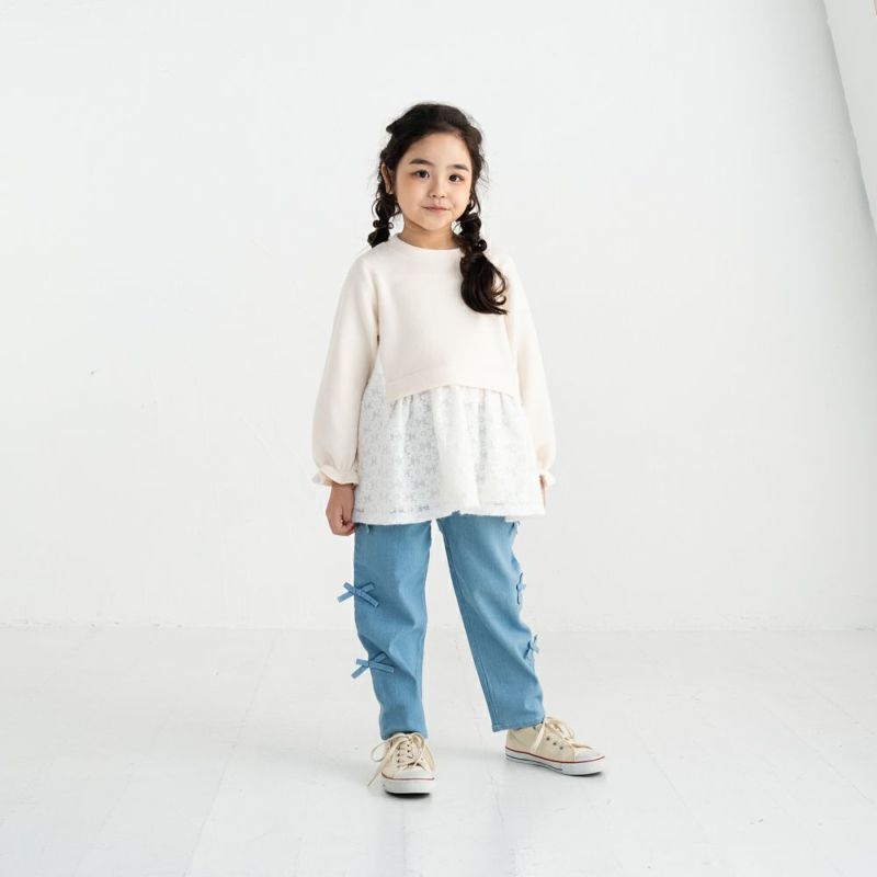 モヘアニットと透け感のある起毛レースフリルとの組み合わせが清楚で可愛らしい魅力的なアイテム。暖かみのある素材感がシーズンムードを盛り上げます♪ご自宅の洗濯機で洗えるのでデイリーのコーディネートにぴったりの1着です。