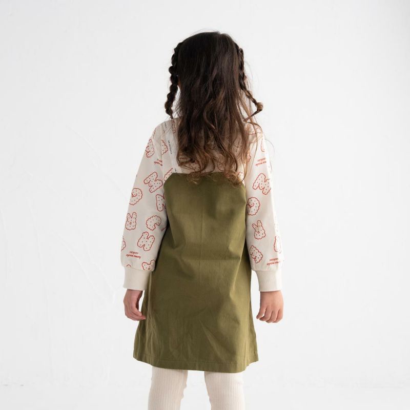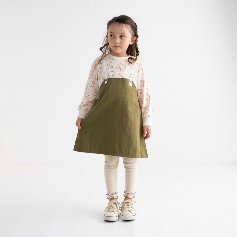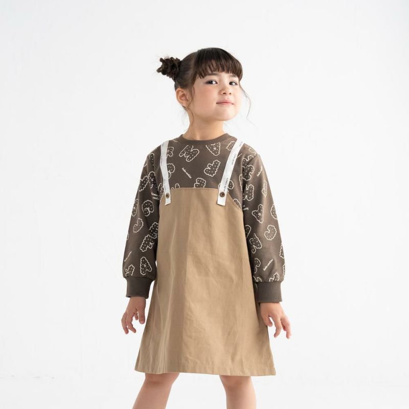 ドッキング仕様で肩ベルトのずり落ちや引っかかりがないので活発なお子様も気にせず遊べます。1枚で完成しているから忙しい朝もサッと着るだけ。異素材の切り替えで奥行きのあるスタイルに。袖口がリブでキュッととまるのも嬉しい◎