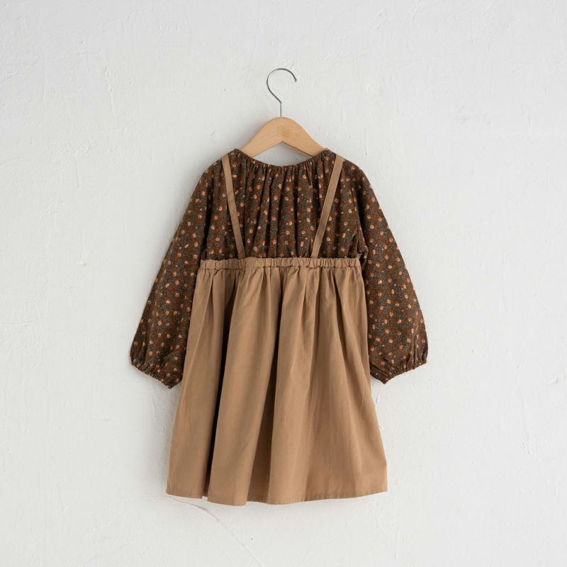 あたたかみのある起毛花柄ブラウスとフリルジャンスカを組み合わせたガーリーなドッキングデザイン。後ろ衿ぐりはゴム仕様で着脱もスムーズ。可愛さと機能性を1枚にぎゅっと詰めこみました♪お出かけやお呼ばれにもぴったりのワンピースです。