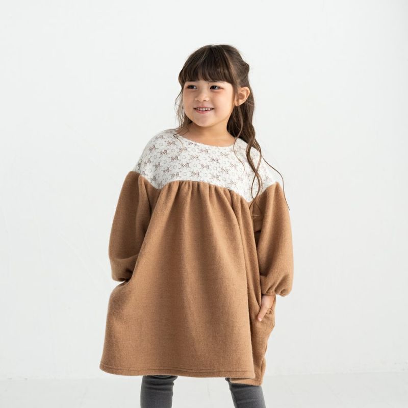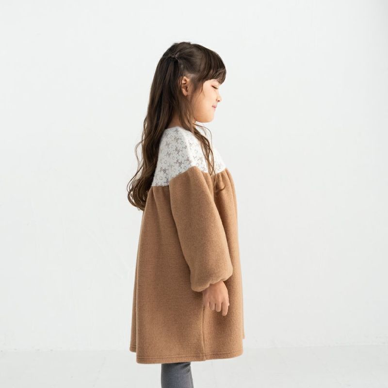 モヘアニット切替が人気のギャザードッキングワンピース。ぽわんとした袖とギャザースカートが女の子らしさを感じるデザイン♪起毛レース×モヘアニット素材がシーズンムードを盛り上げてくれます♪両脇にポケットを備えているので実用性も◎