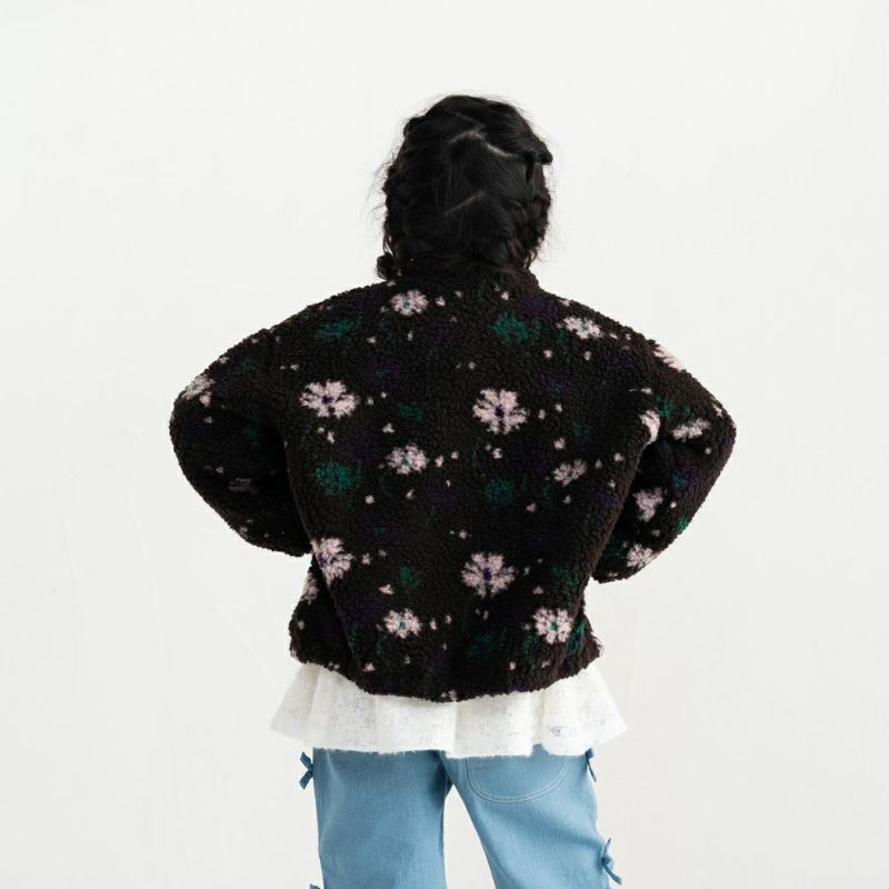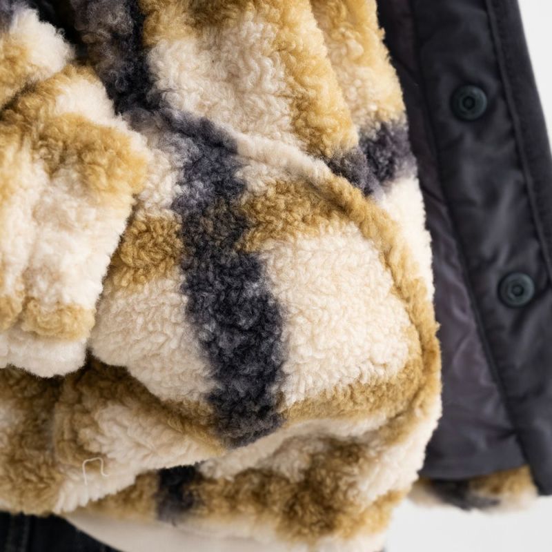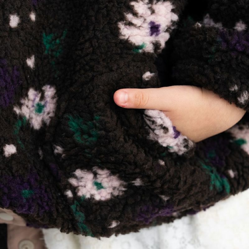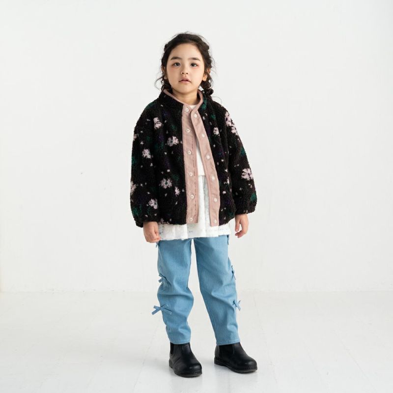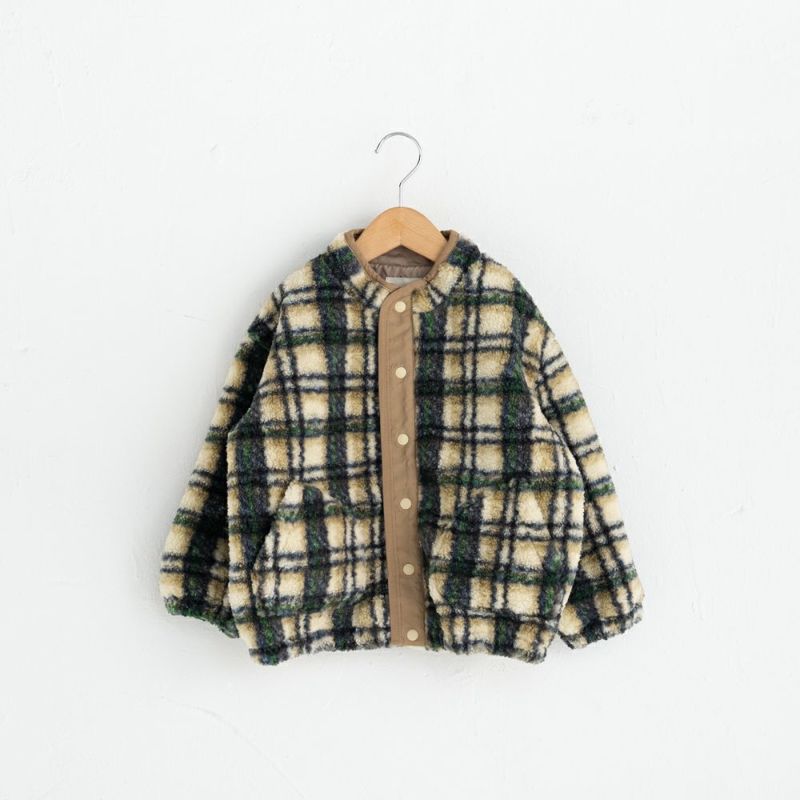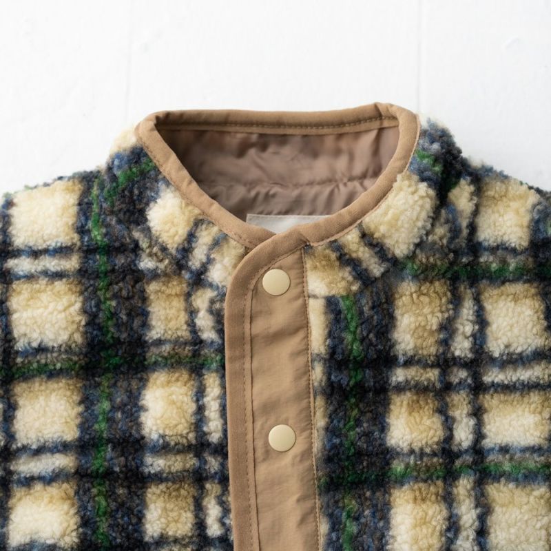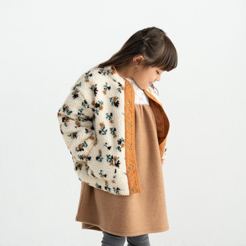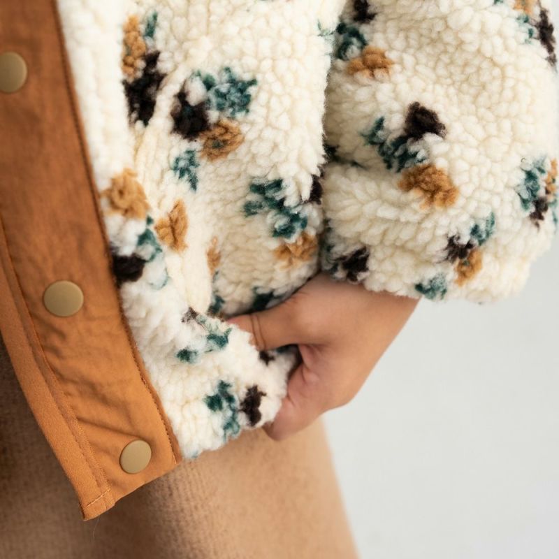 柄が可愛い!思わず触りたくなるもこもこボアアウターです。大きめスナップボタンでお子様も着脱しやすい◎秋冬のコーディネートがぱっと明るくなる主役級アウターは今年の一押しアイテムです♪フードがないので通園通学にも使えるところが嬉しい!