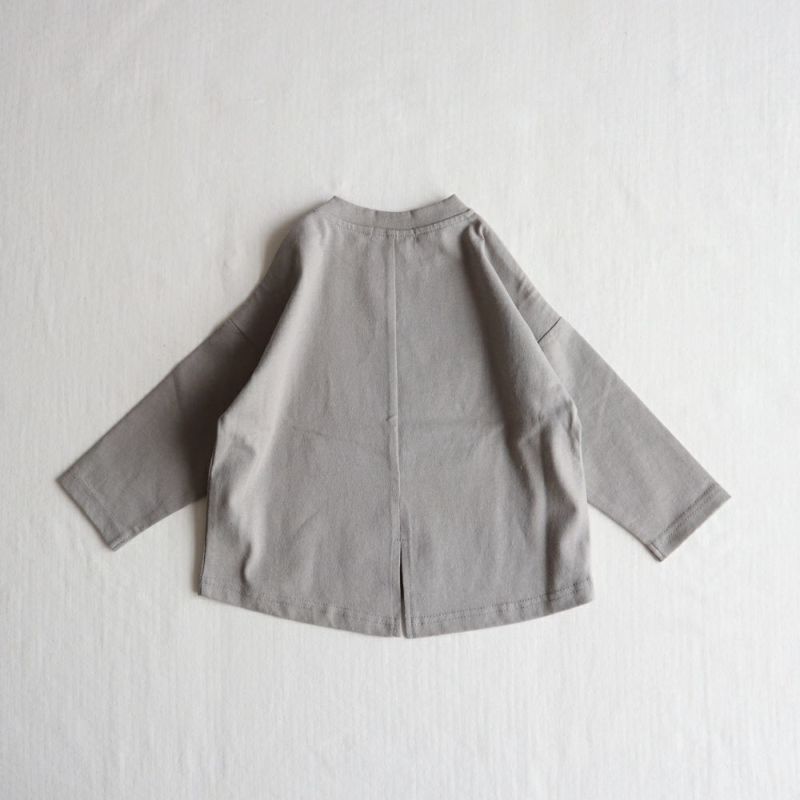 ドロップショルダーのゆったりシルエットは、寒い日に長袖肌着を着てももたつきにくい!後ろの裾にはスリットがあるのでアクティブに動けます。