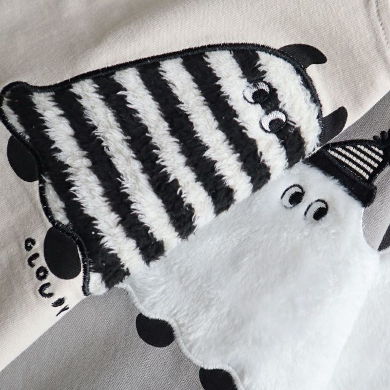 【グレー】本体:綿100%、リブ:綿95% ポリウレタン5%、アップリケ:ポリエステル100%、帽子アップリケ:ポリエステル85% レーヨン10% ポリウレタン5%