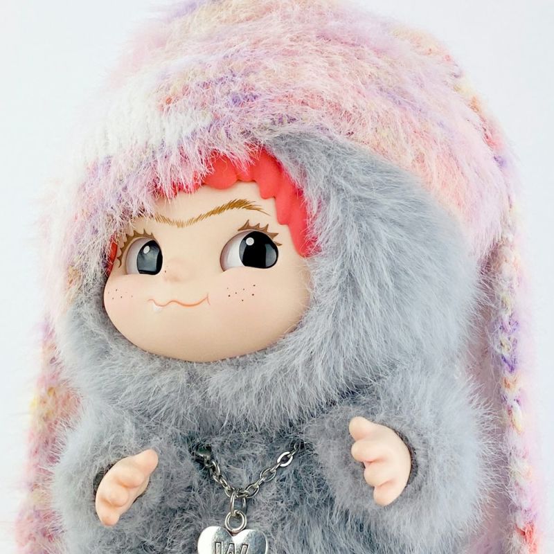 ころんとしたフォルムが可愛いもふもふの柔らかいぬいぐるみボディに、愛らしいお顔。Y2K(※)をイメージした帽子やアクセサリー付きで、ファッション雑貨感覚でも楽しめるアイテムです。