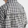後ろ側が長く、ギャザーの入ったシルエットがおしゃれなシャツ。