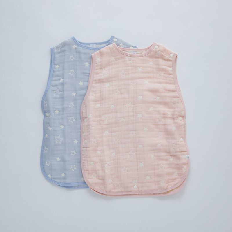 左肩と両脇をスナップで留めるタイプなので、眠ってしまった赤ちゃんに着せてあげるのも簡単です。寒い冬の夜だけでなく、夏の冷房対策としてやお昼寝の時などにも使える便利なアイテムです。オリジナルデザインの星柄は、ピンクとブルーの2種類。丁寧に作られた日本製で、大切な方への贈り物にもおススメです。