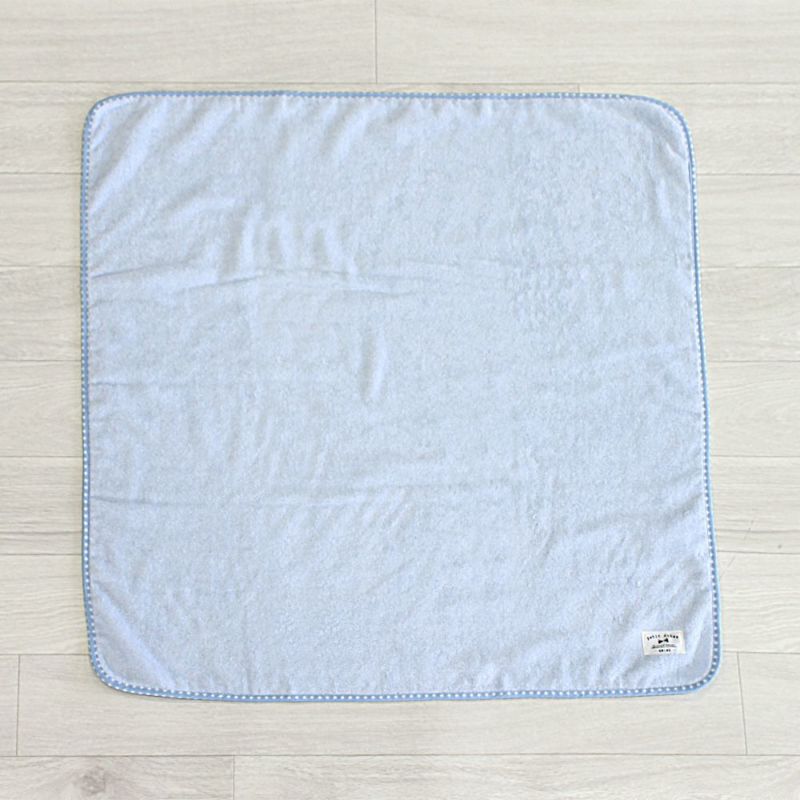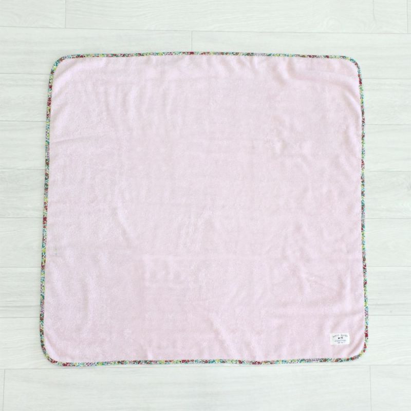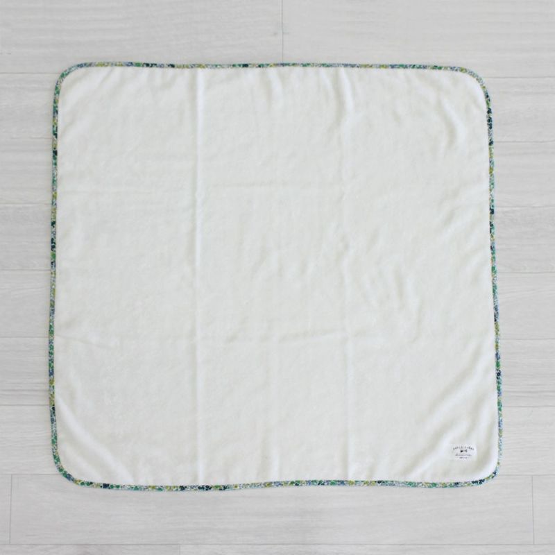 「おくるみタオル」は、大判の正方形(約80×80cm)で、赤ちゃんを寝かせたまま身体を拭くことができ使いやすいです。赤ちゃんをくるんだり、おふとんやオムツ替えマットなどマルチに活躍するアイテムです。