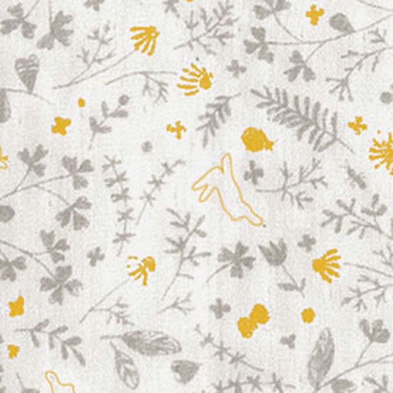 オーガニックの糸を使用した3重ガーゼ生地に、ボタニカルをイメージしたモチーフを全面にちりばめたグレーの癒される柄のおくるみ。