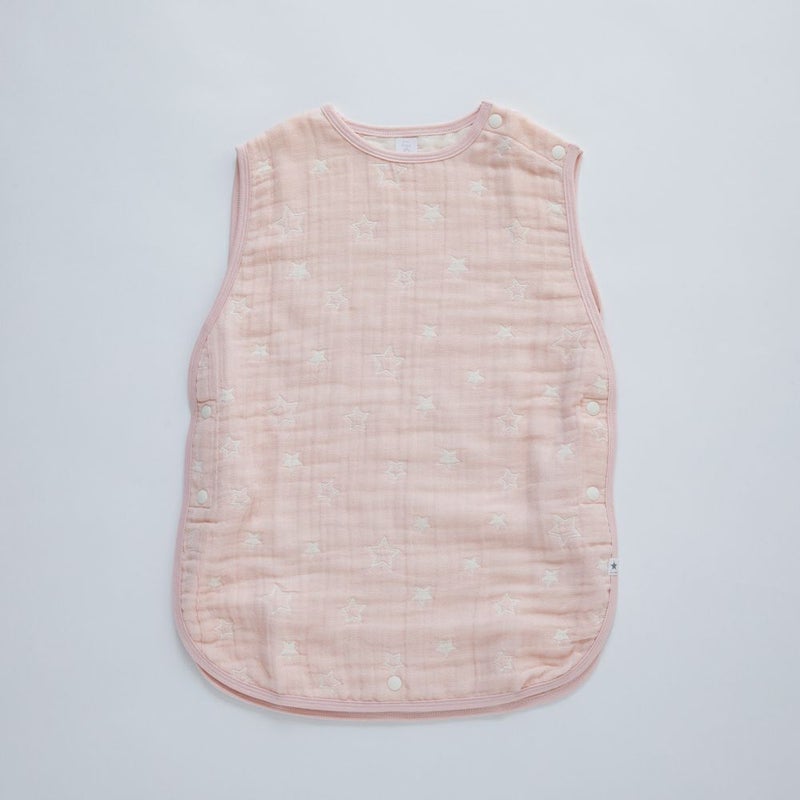 左肩と両脇をスナップで留めるタイプなので、眠ってしまった赤ちゃんに着せてあげるのも簡単です。寒い冬の夜だけでなく、夏の冷房対策としてやお昼寝の時などにも使える便利なアイテムです。オリジナルデザインの星柄は、ピンクとブルーの2種類。丁寧に作られた日本製で、大切な方への贈り物にもおススメです。