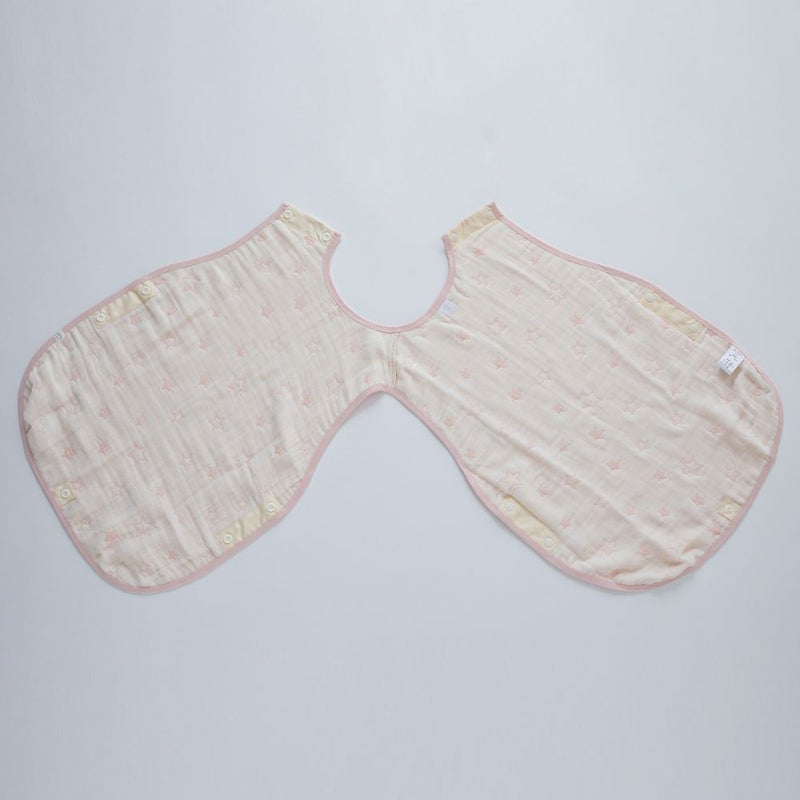 左肩と両脇をスナップで留めるタイプなので、眠ってしまった赤ちゃんに着せてあげるのも簡単です。寒い冬の夜だけでなく、夏の冷房対策としてやお昼寝の時などにも使える便利なアイテムです。オリジナルデザインの星柄は、ピンクとブルーの2種類。丁寧に作られた日本製で、大切な方への贈り物にもおススメです。