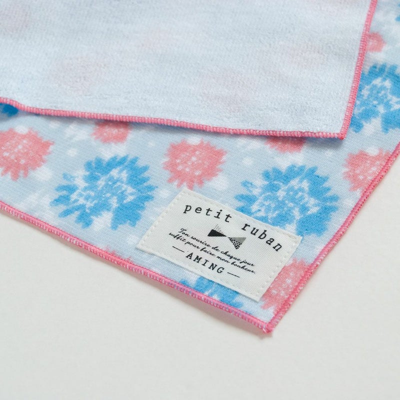 petit ruban(プチルバン)モスリンガーゼハンカチ フラワー柄(ブルー)