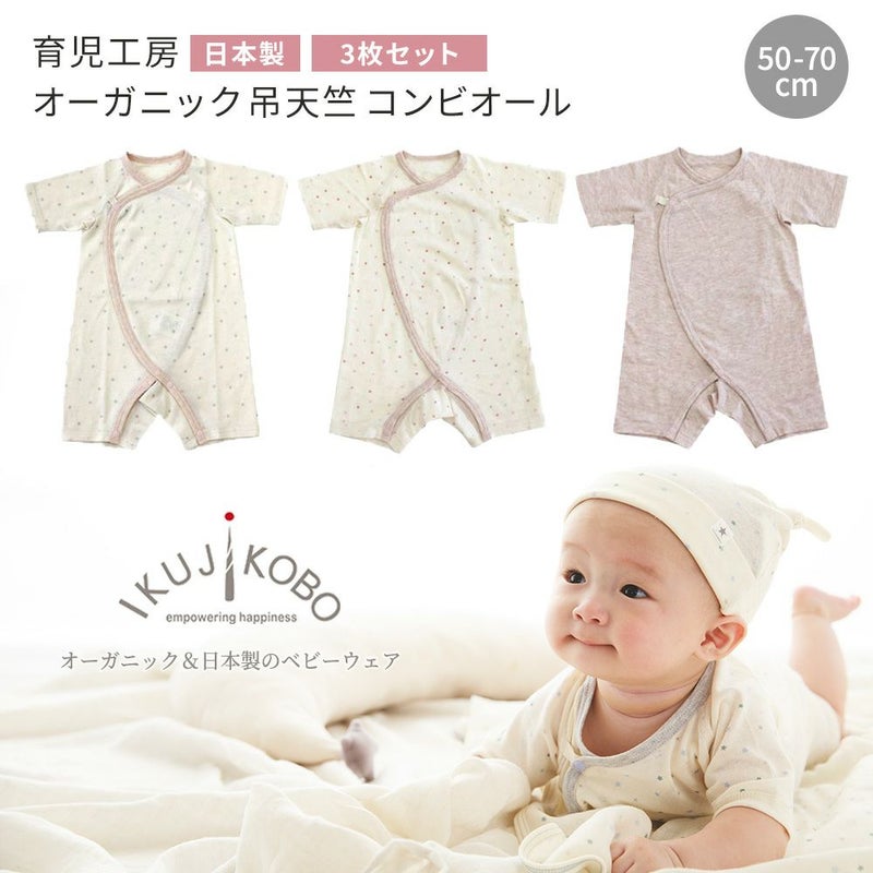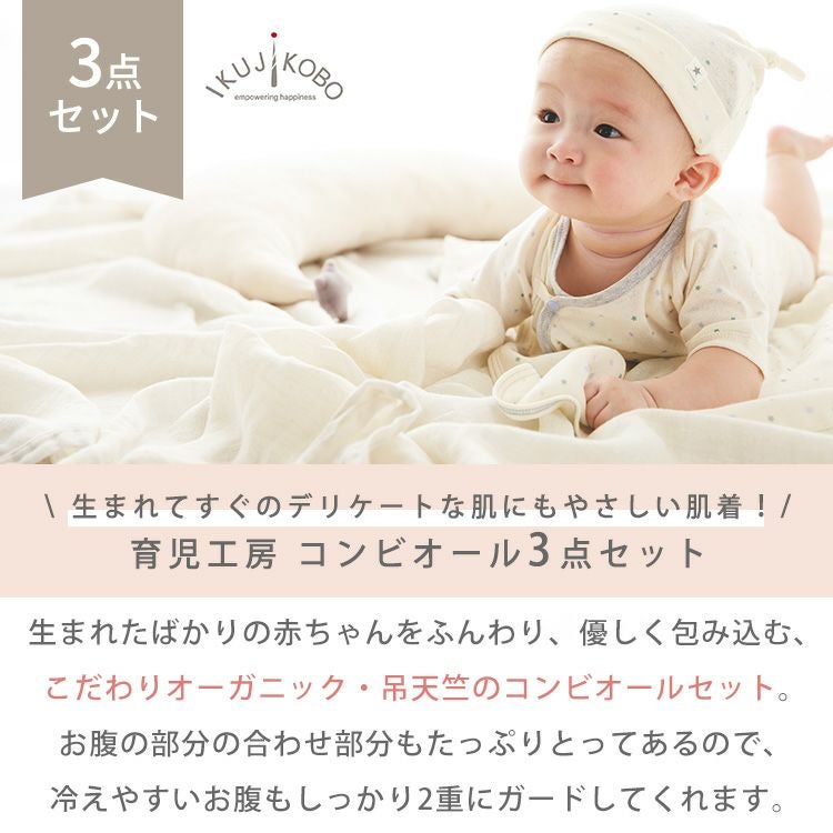 生まれてすぐのデリケートな肌にもやさしい肌着 【出産準備セット】ikujikobo(育児工房)オーガニック コンビオール3点セット(女の子)【小児科医の育児本プレゼント!】/Amingオリジナルセット