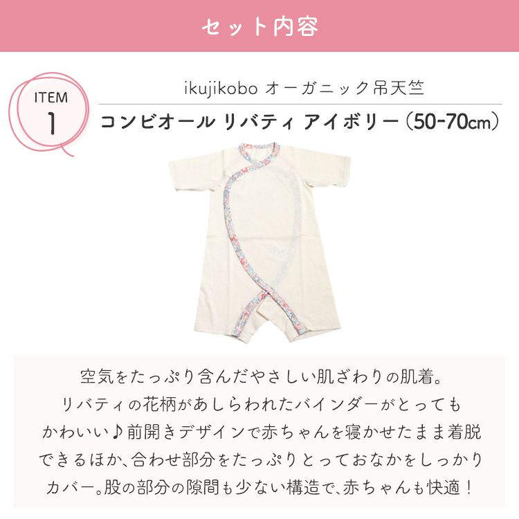 【出産祝い ギフトセット】ikujikobo(育児工房) リバティ&金平糖 オーガニックギフト ピンク【ギフトボックス入り】/Amingオリジナルセット