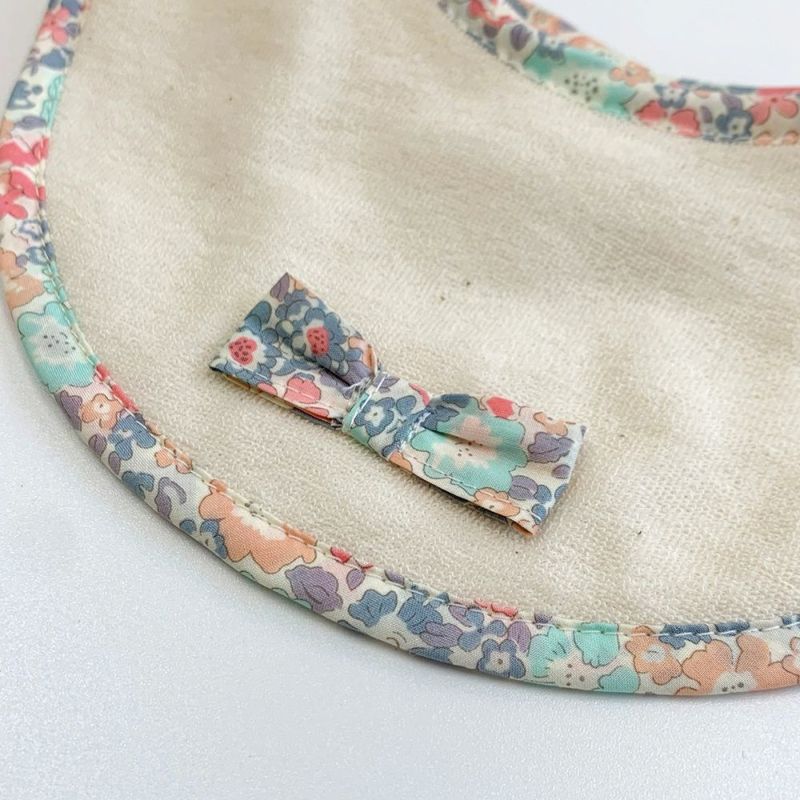 お洋服の汚れ防止だけでなく、お顔周りを明るくしてくれる華やかなデザインです。