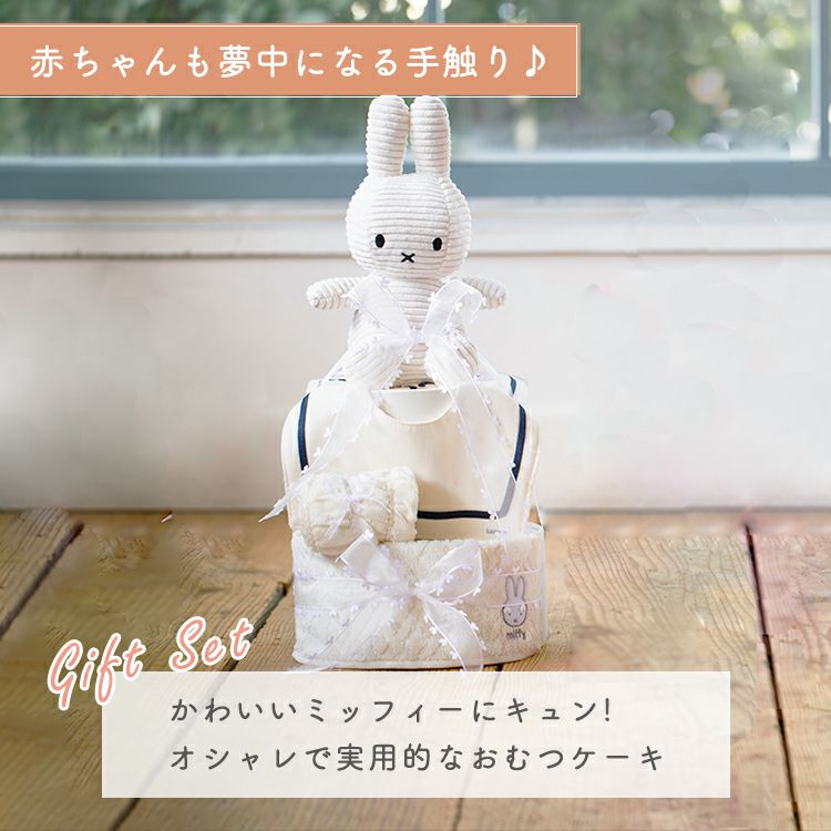 【出産祝い おむつケーキ】ミッフィー ホワイト 2段おむつケーキ/Amingオリジナルセット