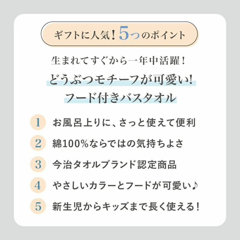 洗うほどにやわらかくなる今治タオルブランド認定のバスタオルは、新生児からキッズまで長く使えるアイテム。どのどうぶつもかわいくてたまりません!