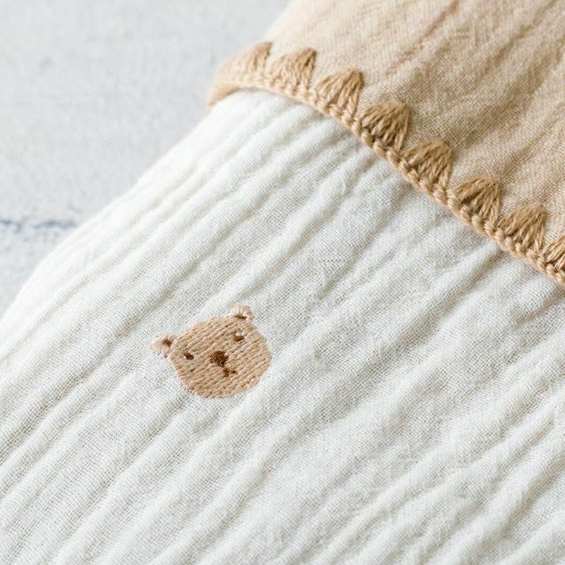 赤ちゃんを優しく包んで「おくるみ」として、お昼寝やベビーカーなどの「ブランケット」として、お風呂のあとの「湯上りタオル」として、ママの「ひざ掛け」にも。マルチに活躍する必須アイテムです◎