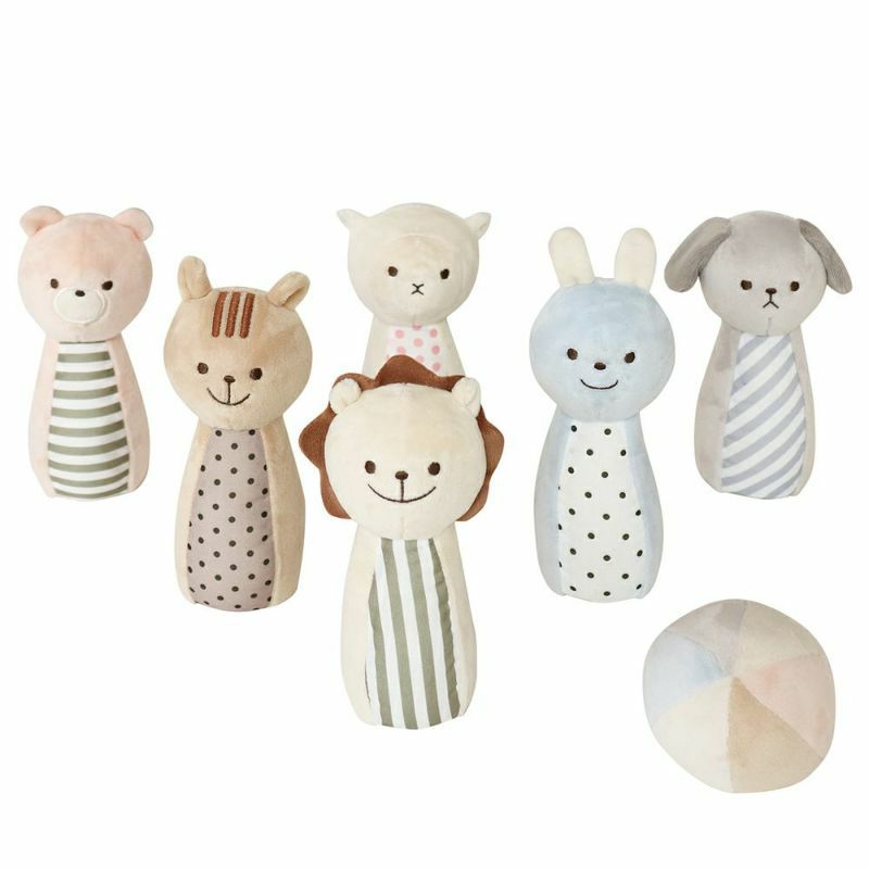 布おもちゃはインテリアに馴染むやさしい色合いで、ボウリングあそびやラトル、ごっこ遊びもできちゃう♪