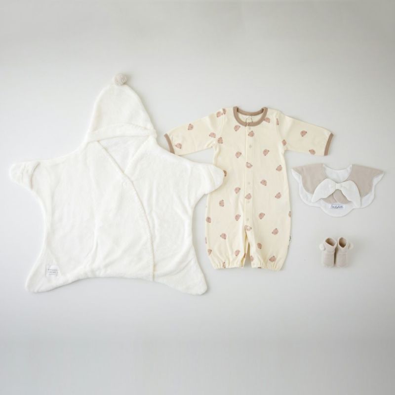 【出産祝い ギフトセット】mocmof(モクモフ)お星様おくるみともこもこ天使スタイのセット【ギフトボックス入り】/Amingオリジナルセット