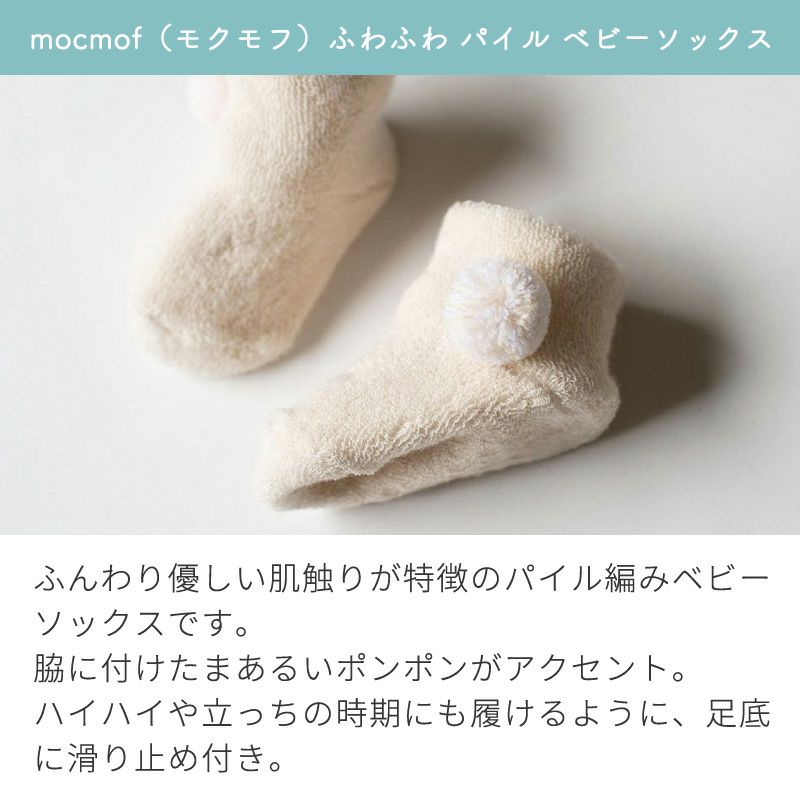 ふんわり優しい肌触りが特徴のパイル編みベビーソックスです。
