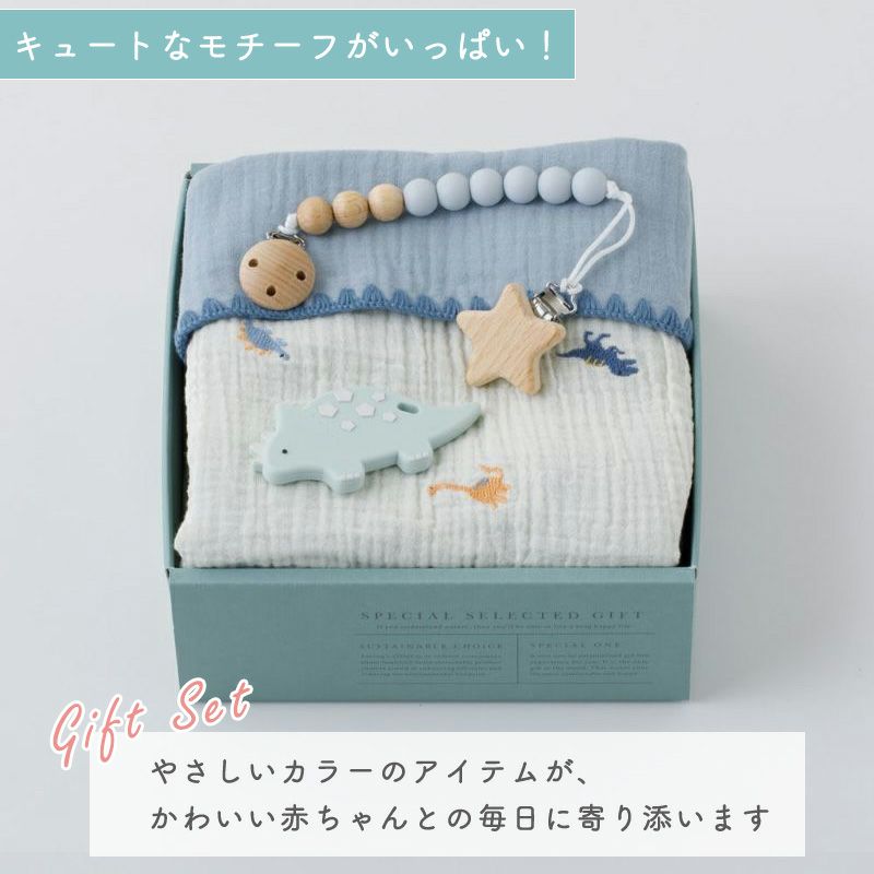 他の画像を見る 【出産祝い ギフトセット】キュートなモチーフがいっぱいのおくるみと歯固めギフト ブルー 【ギフトボックス入り】/Amingオリジナルセット ¥ 7,183 税込 在庫切れ お気に入りに登録する