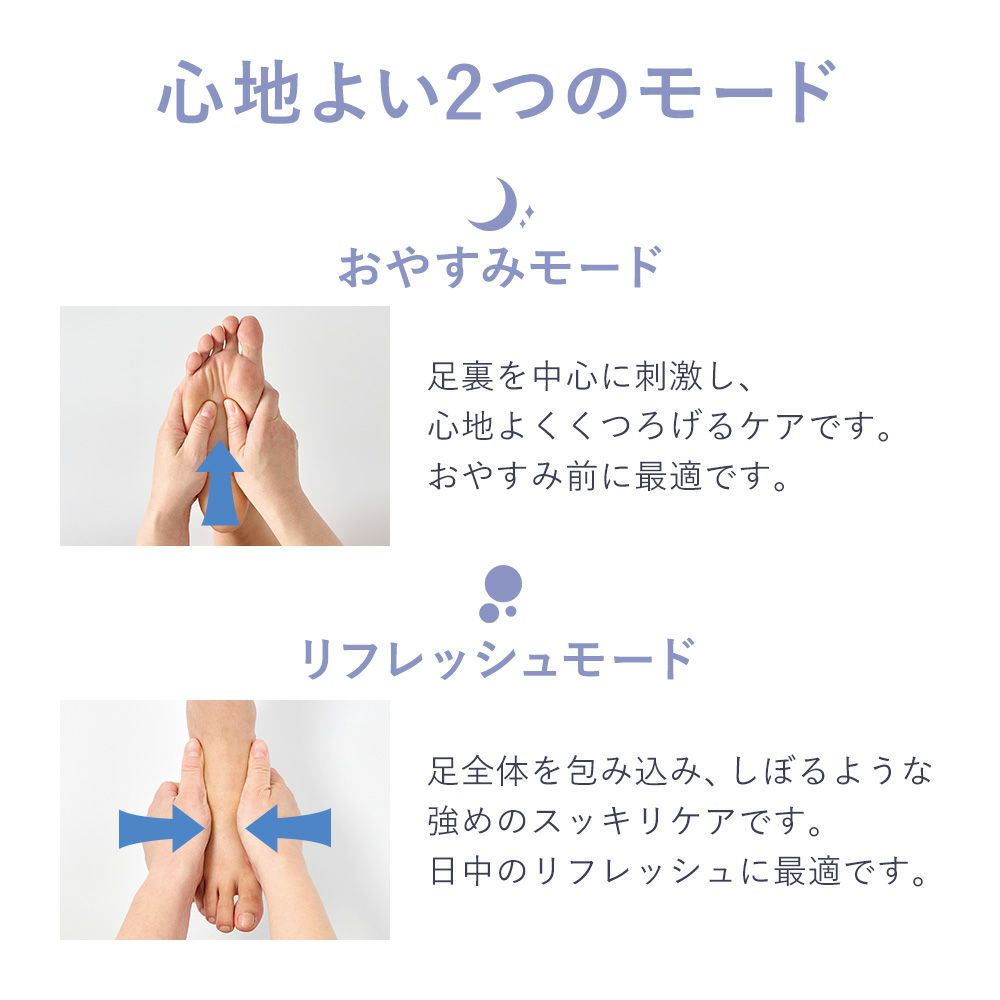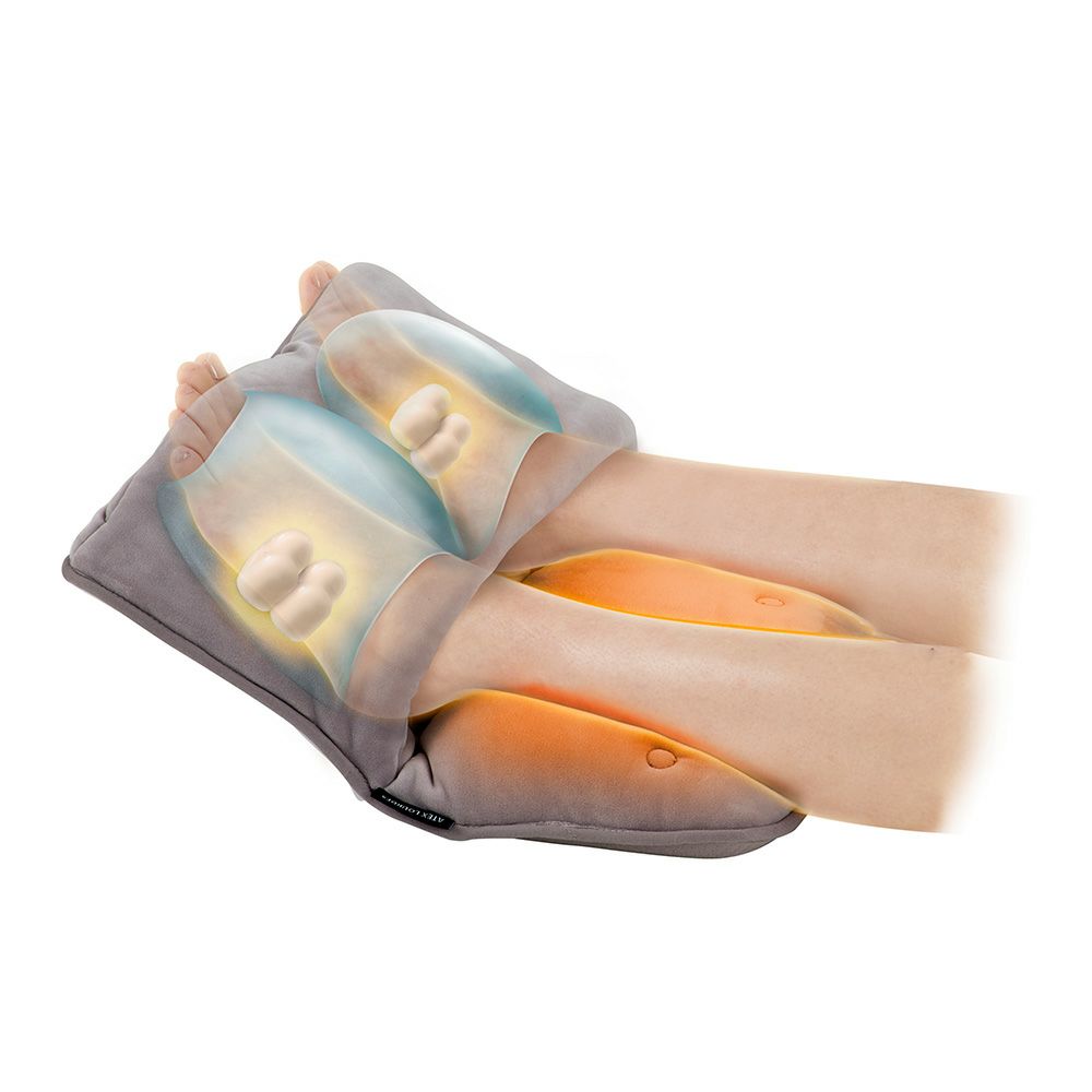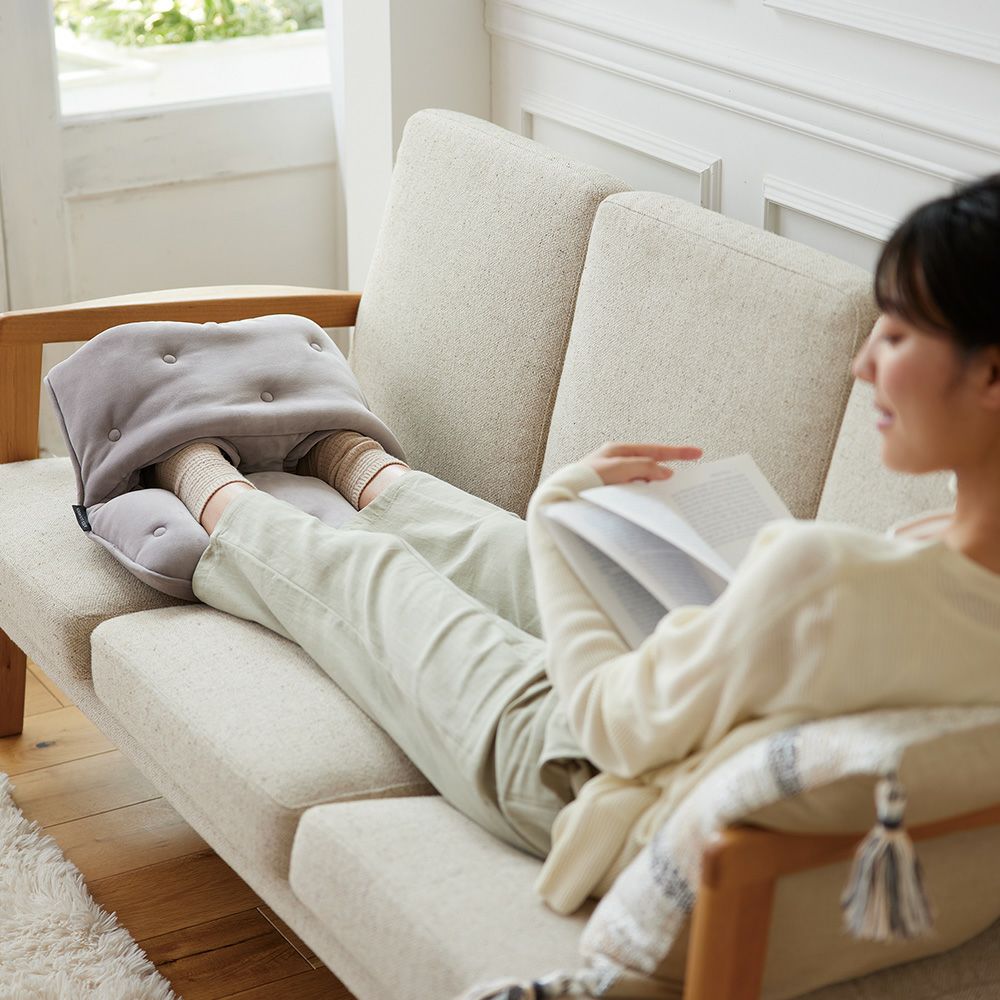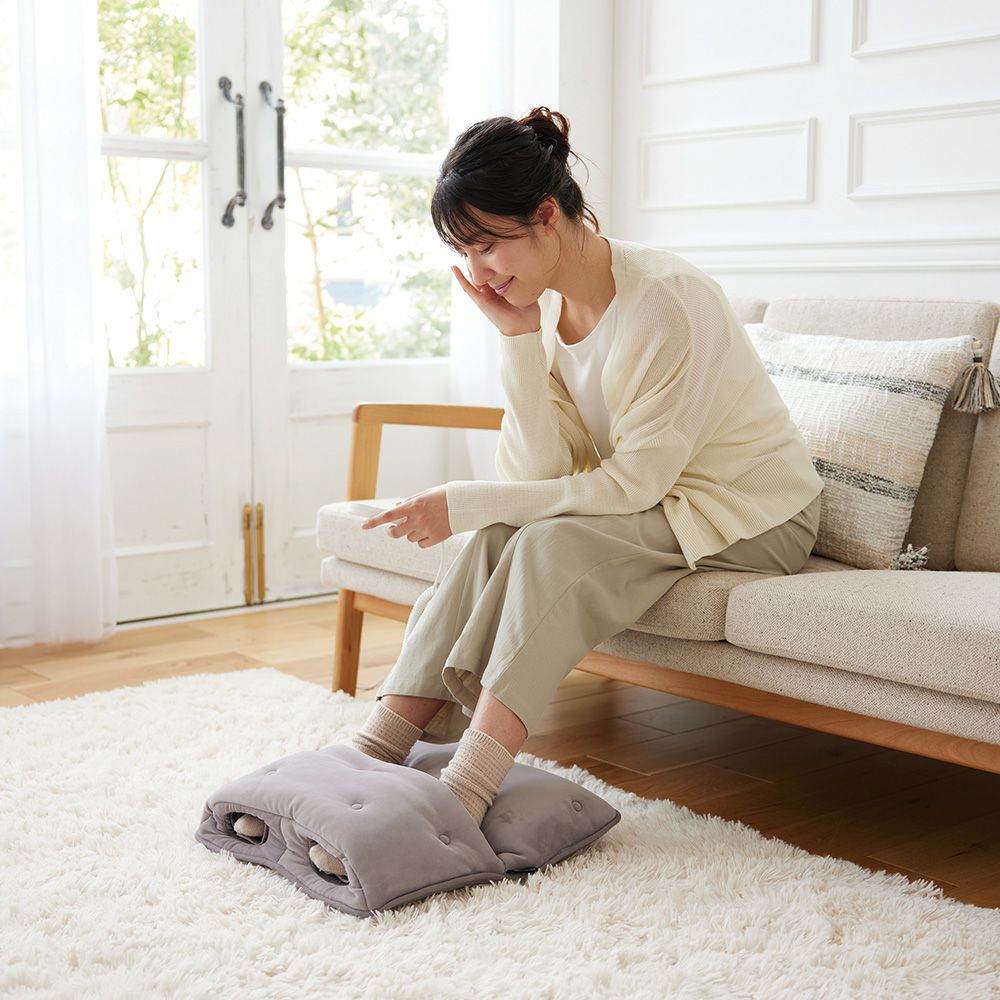 ふくらはぎを温めながら、一定のリズムで振動。足を包み込むように配置したエアバッグが加圧と収縮を繰り返し、足裏突起がグイっと足裏を刺激します。