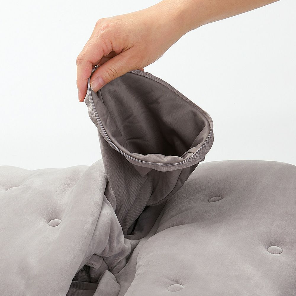 本体側生地:ポリエステル 95%・ポリウレタン 5%、本体底生地:ポリエステル 100%、内カバー生地:ポリエステル 100%