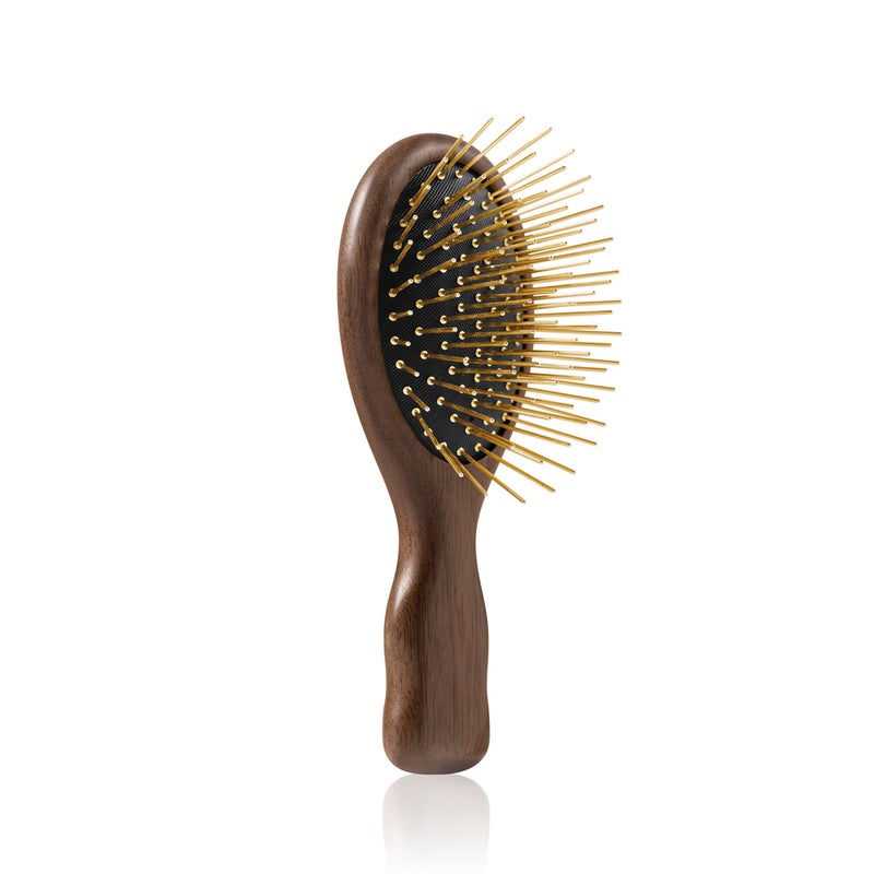 ゴールドと天然木の組み合わせが静電気を徹底的に抑え、キューティクルを整え、瞬時のツヤをもたらします。