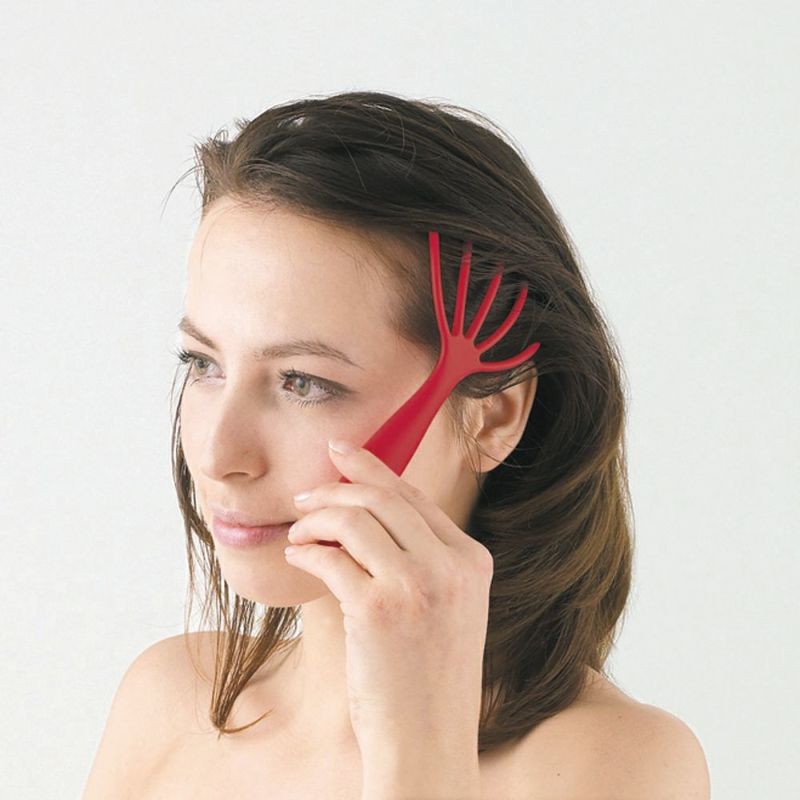 突起に付いた遠赤外線発生ボールで頭皮をかき上げるようにマッサージすることで血行をよくします。