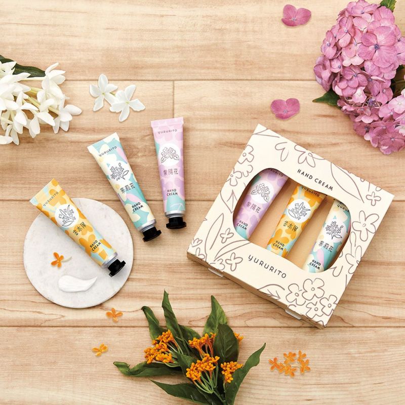 紫陽花・金木犀・茉莉花の香りが楽しめるハンドクリーム3本セットです。