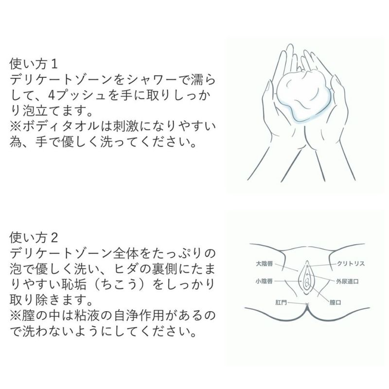 デリケートゾーン周りを泡で優しく洗った後、水またはぬるま湯で充分に洗い流します。