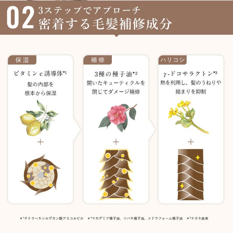 厳選された成分が髪の毛の根元からしっかり保湿します。