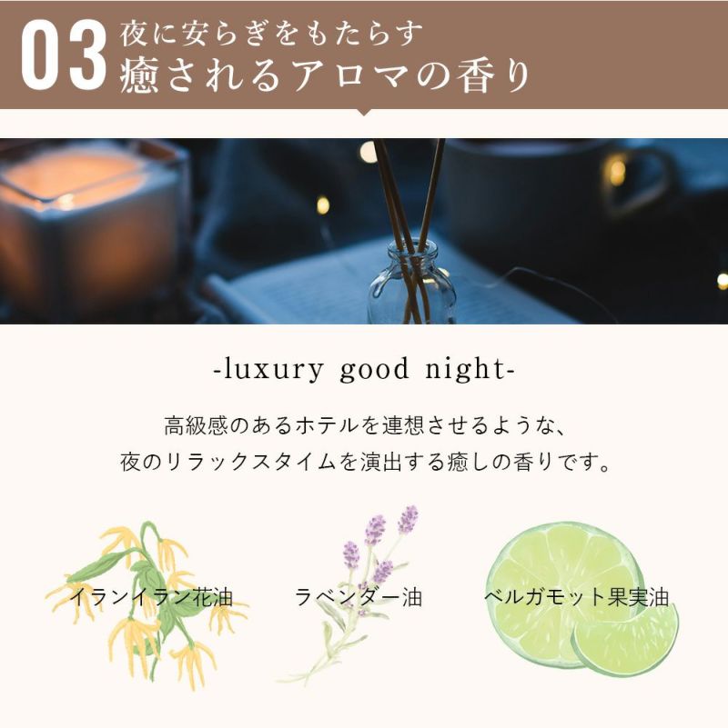 シクロペンタシロキサン、ジメチコン、トリエチルヘキサノイン、ジフェニルシロキシフェニルトリメチコン、ジメチコノール、エチルヘキサン酸アルキル(C14-18)、コハク酸ジエチルヘキシル、アルガニアスピノサ核油、オリーブ果実油、サルビアヒスパニカ種子油、マカデミア種子油、ツバキ種子油、テトラへキシルデカン酸アスコルビル、メドウフォーム種子油、トリ(カプリル酸/カプリン酸)グリセリル、γ-ドコサラクトン、ラベンダー油、イランイラン花油、ジュニペルスメキシカナ油、ベチベル根油、ベルガモット果実油、レモン果皮油、ローマカミツレ花油