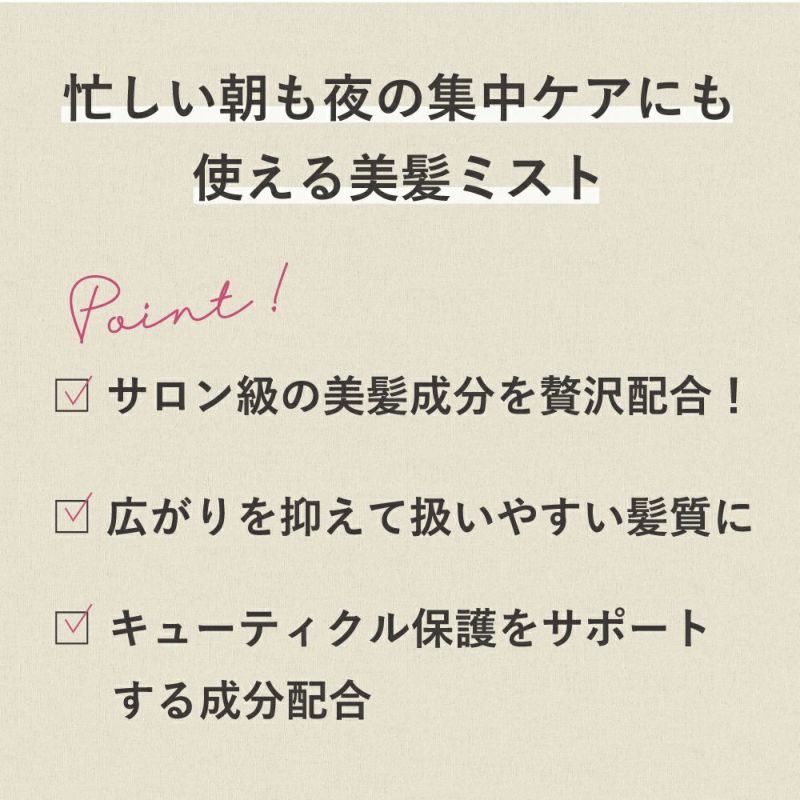 髪の毛全体にシュッとひと吹きするだけで、理想的な髪へと導くトリートメント。