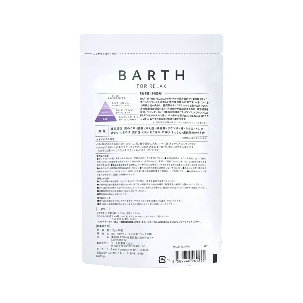 BARTH(バース) 中性重炭酸入浴剤RELAX LavenderFog 30錠(10回用)