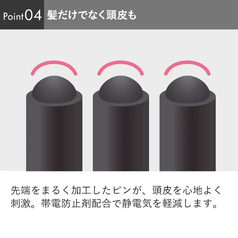 先端をまるく加工したピンが、頭皮を心地よく