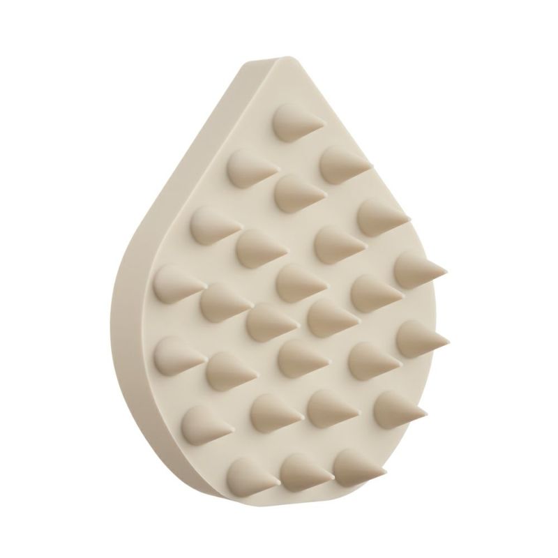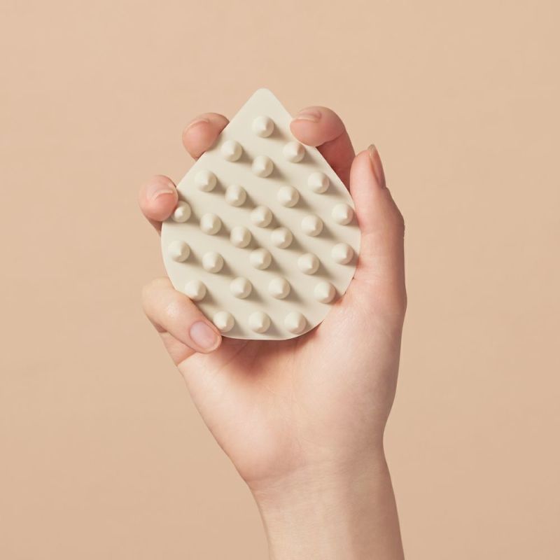 アウトバスでもインバスでも使え、頭皮のツボを心地よく刺激できるマッサージブラシ。