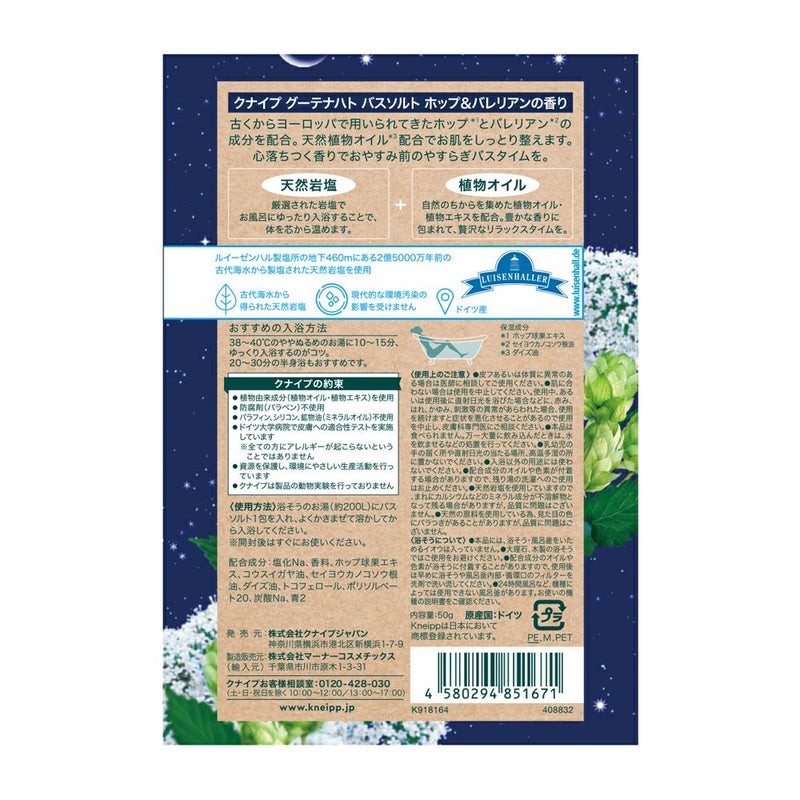 Kneipp(クナイプ) グーテナハト バスソルト ホップ&バレリアン 50g